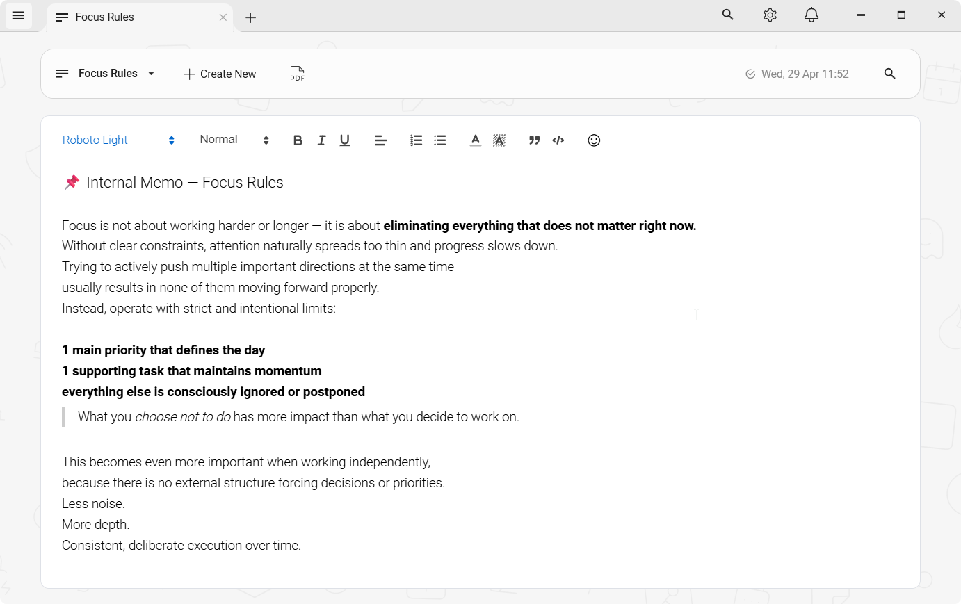 Export individual notes as formatted PDFs. Back up the entire vault as an encrypted archive and restore it on any Windows machine. Lock the app with a hotkey when you step away. Switch between 9 editor fonts. Use dark or light theme, or let Windows decide.